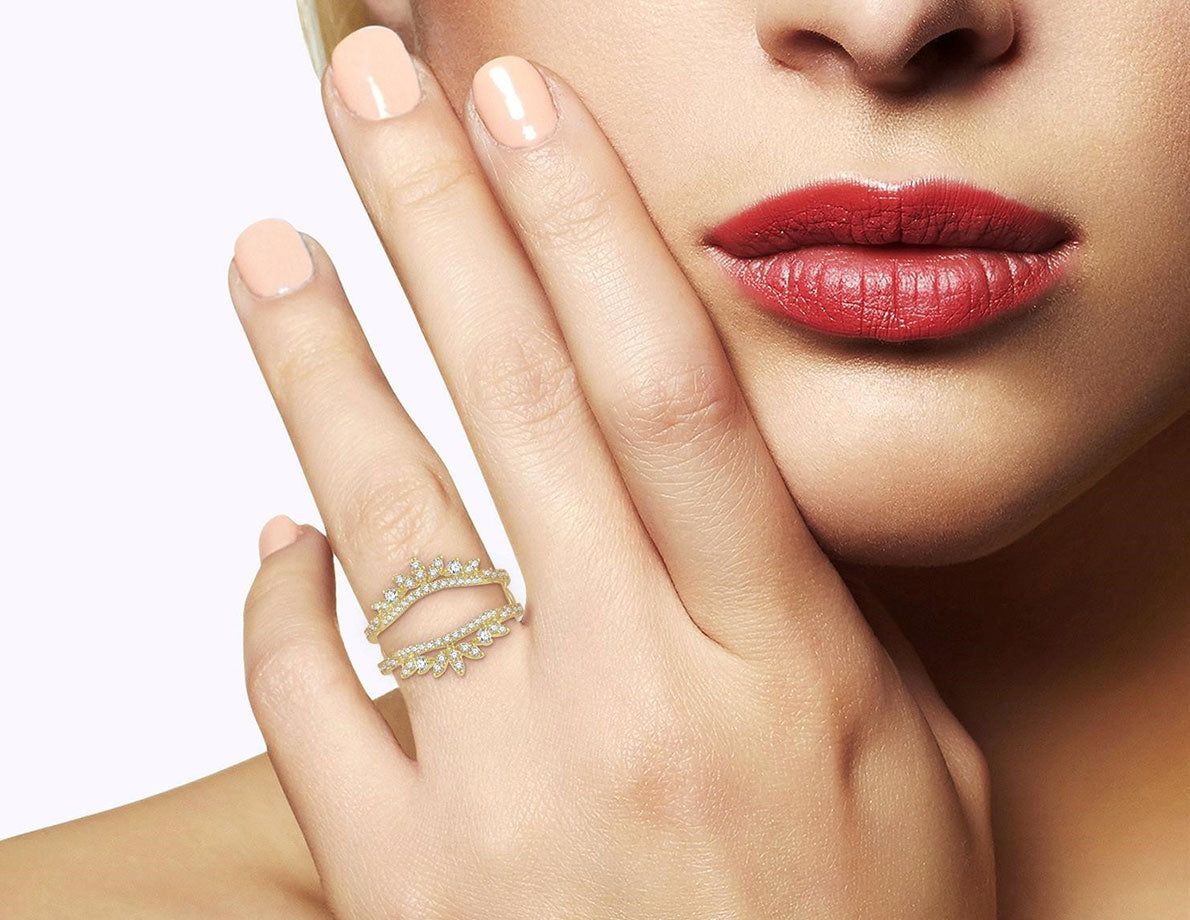 Browse our exquisite collection of sparkling Matching Bands to signify your perpetual love. Pick one of these gorgeous Matching Bands as souvenir of your endless love & commitment.